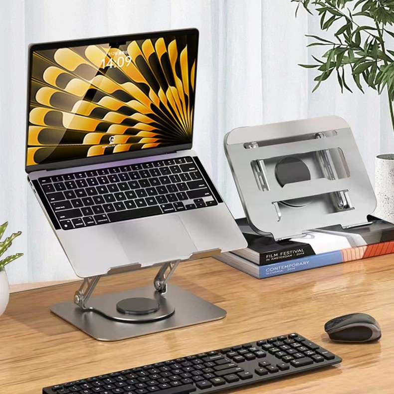 Dudukan Laptop Dudukan Tablet Dudukan Lipat Lipat Meja Anti Slip Logam Berputar 360 Derajat