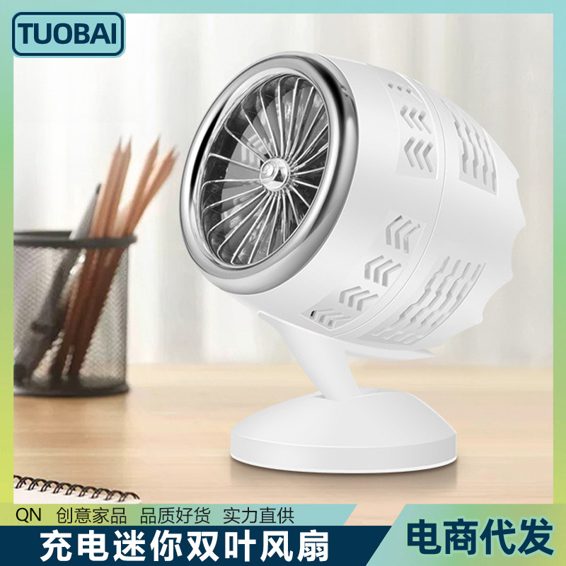 Kipas angin mini rumah tangga, nada cahaya daun ganda, pendingin udara angin besar musim panas, kipas saku asrama kantor