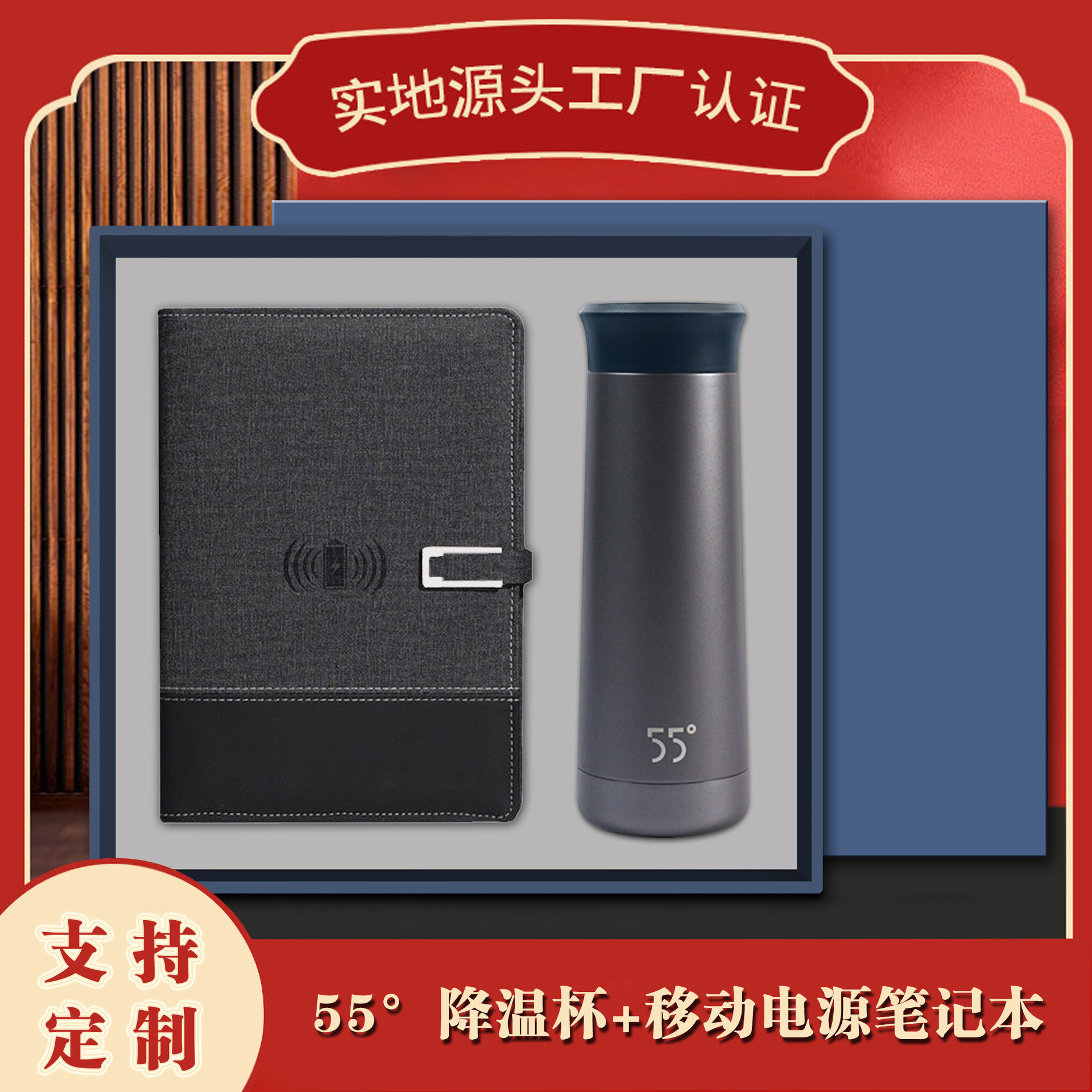 Kotak hadiah cangkir pendingin Notebook 55 °, setelan kotak hadiah bisnis kreatif, notebook daya ponsel, kotak hadiah cangkir vakum
