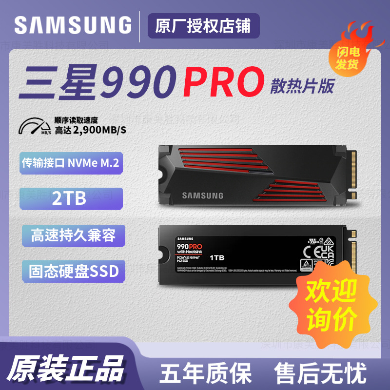 Berlaku untuk Samsung 990PRO notebook desktop SSD 2T fin pendingin M.2 Antarmuka MZ-V9P2T0CW
