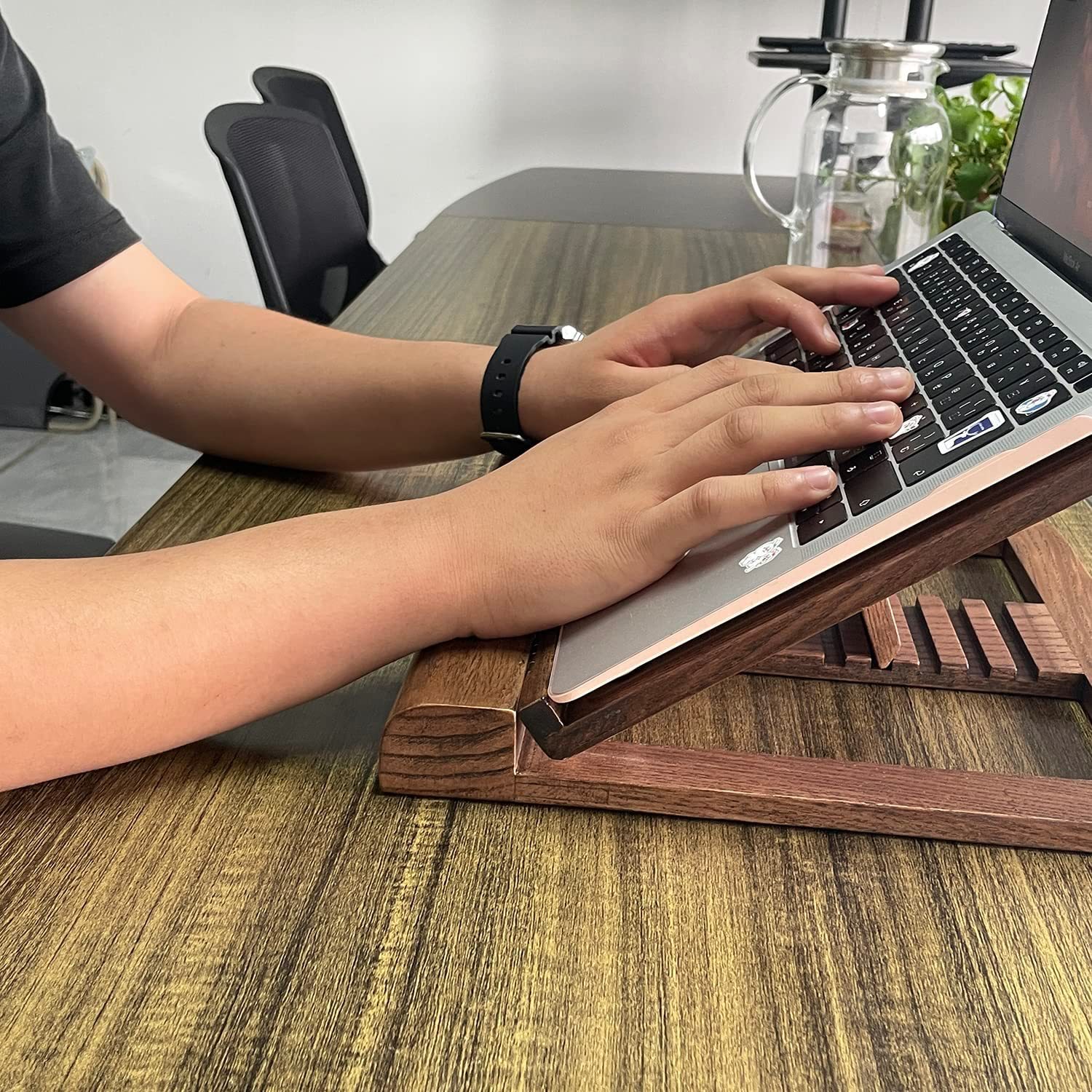 Braket lipat portabel komputer desktop, braket dasar pendingin kayu padat dapat disesuaikan