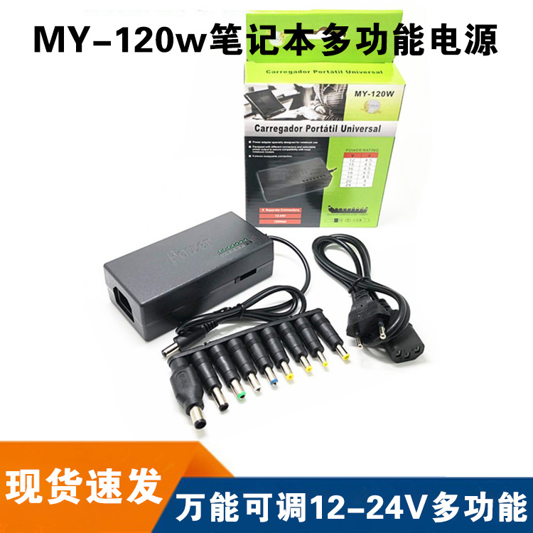 MY120W adaptor daya laptop multifungsi, catu daya komputer pengisi daya multi port 12-24V dapat disesuaikan universal
