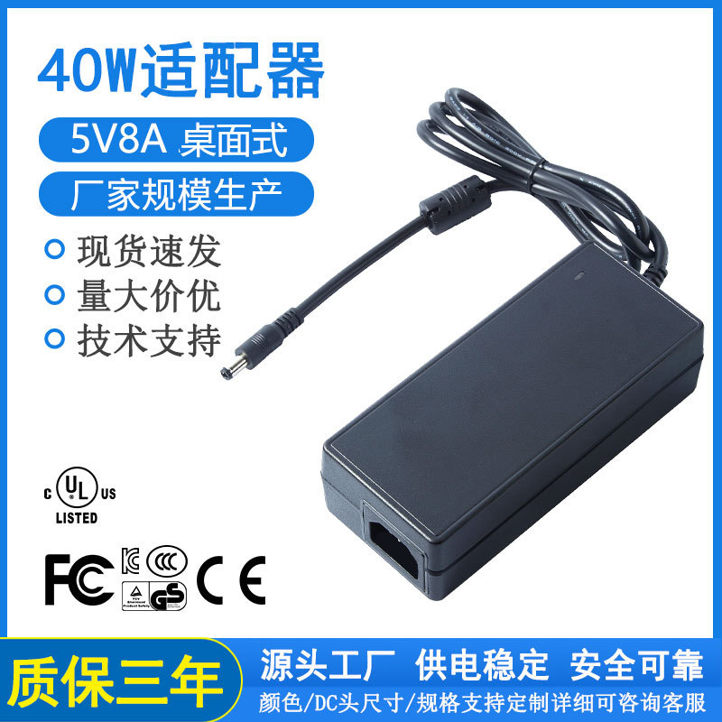 Adaptor daya laptop 5V8A, pengisi daya DC lithium saklar baterai FCC Desktop bersertifikat