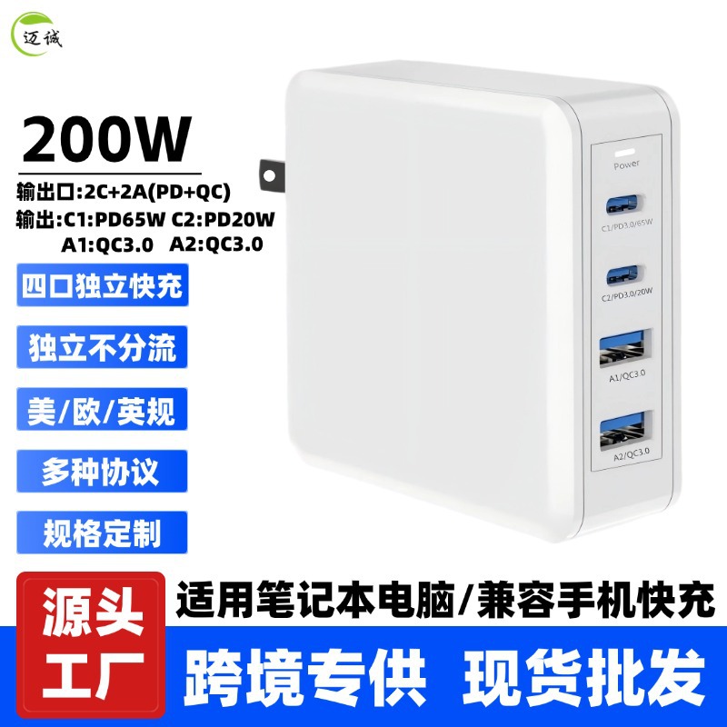 Pengisi daya laptop multifungsi, 200W multi-port isi daya Cepat 65W tablet ponsel dengan adaptor daya