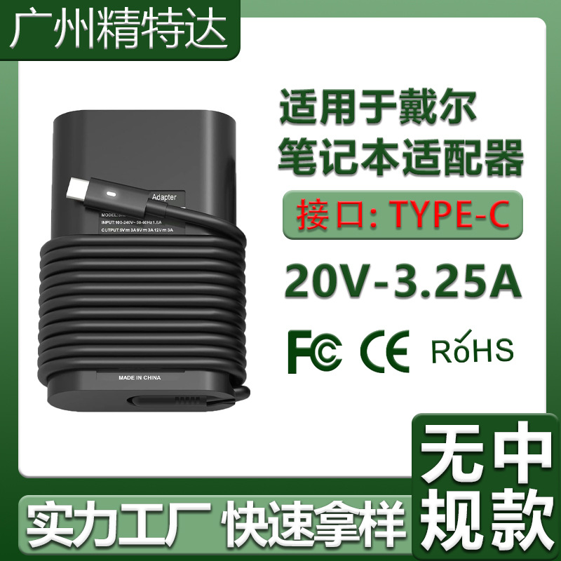 Grosir adaptor daya laptop Dell 65W UNTUK Dell pengisi daya komputer pengisian cepat PD dengan tipe-c
