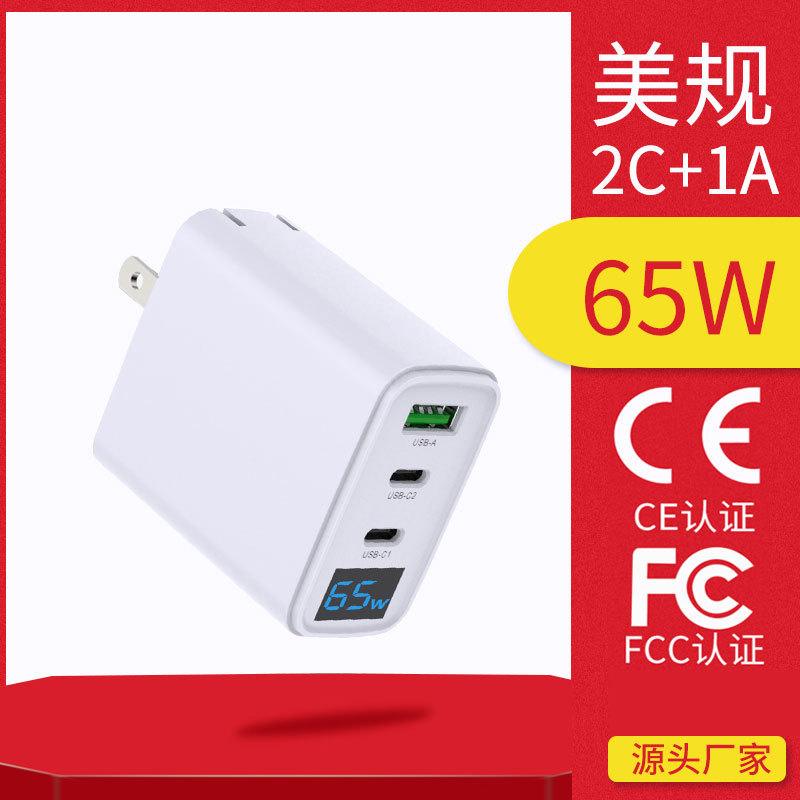 Pengisi daya Cepat PD, 65W Kepala pengisi daya gallium nitrida TYPE-C tablet QC notebook tampilan digital
