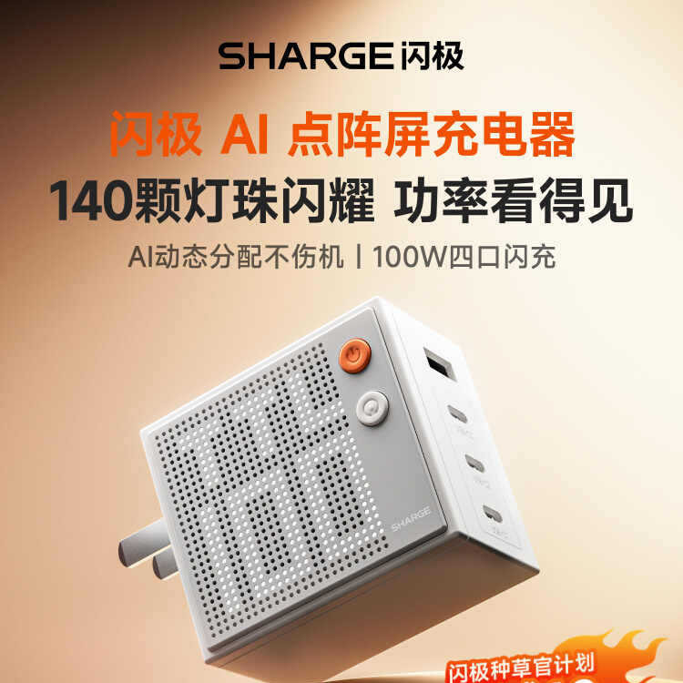 SHARGE Charger Layar Flash Point Array Adaptor Notebook Multi-port 100W Pengisi Daya Cepat 140W Layar Nitrogen