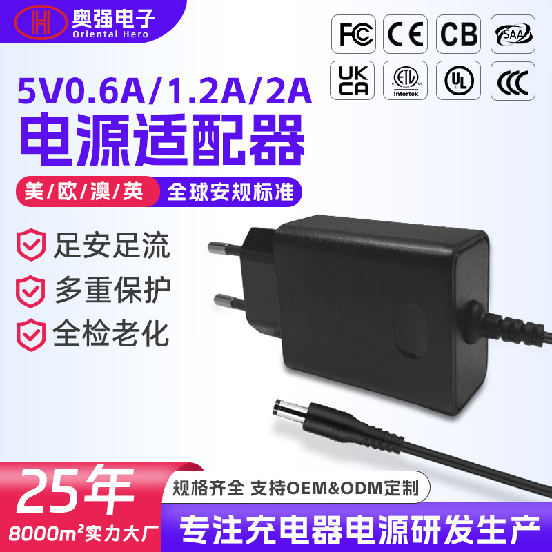 Adaptor daya ETL/FCC/CE 5V2A standar Eropa bersertifikat catu daya kecil peralatan rumah tangga adaptor pemantauan