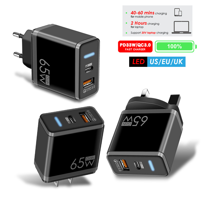 Gallium nitrida GaN PD65W kepala pengisian cepat QC3.0 pengisi daya Amerika dan Eropa adaptor notebook komputer standar
