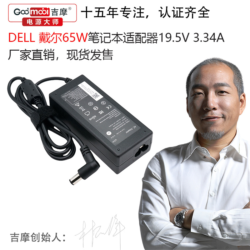 Jimo pengisi daya adaptor, 65W Daya 19.5v 3,34a mulut besar dengan jarum cocok untuk Dell notebook