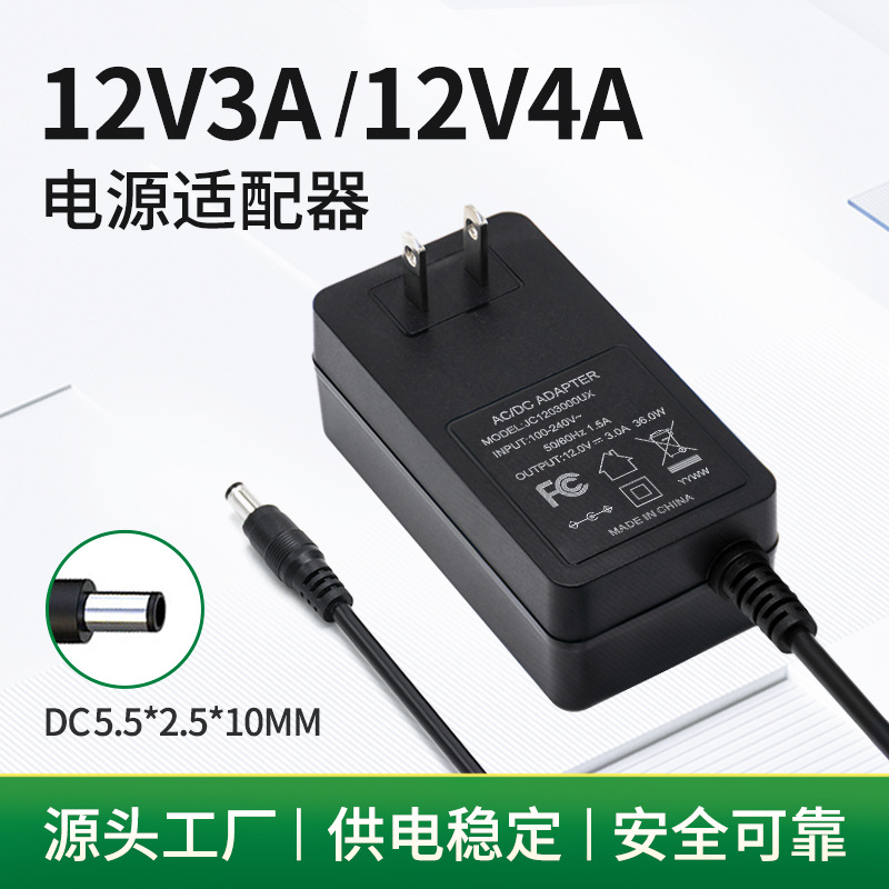 Adaptor daya 12V3A standar Amerika laptop adaptor lampu LED 12V steker di dinding saklar catu daya