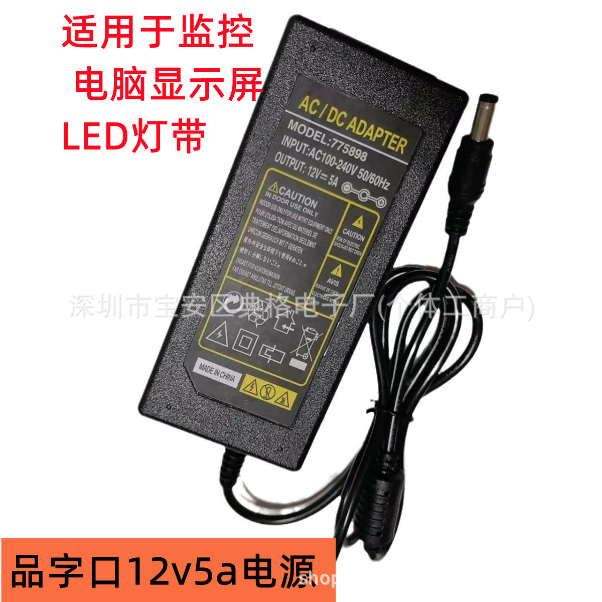 Adaptor daya Desktop 12V5A 60W dengan adaptor daya monitor bersertifikat Tiongkok, Eropa, Jepang, dan Korea Selatan
