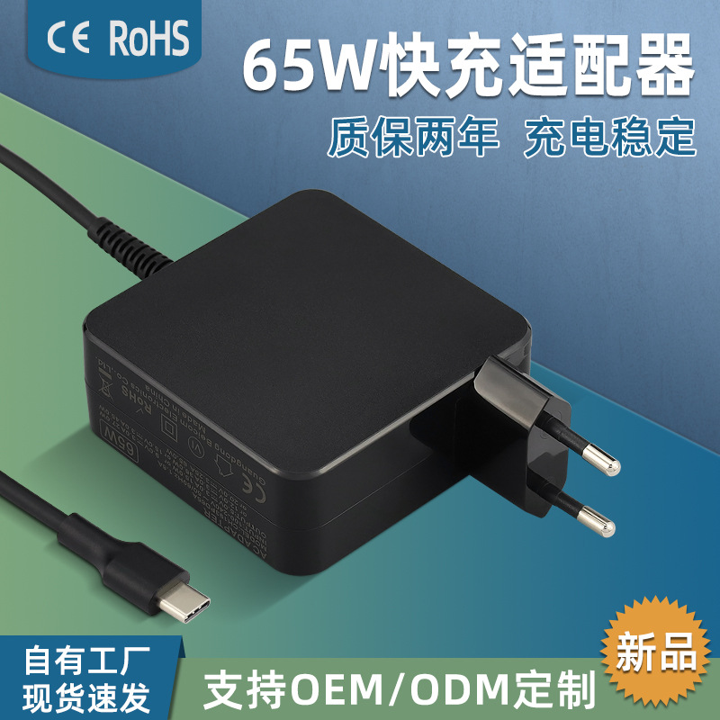 Adaptor pengisian cepat 65W PD, kepala pengisian cepat standar Eropa 20V3.25A kabel daya peralatan rumah tangga