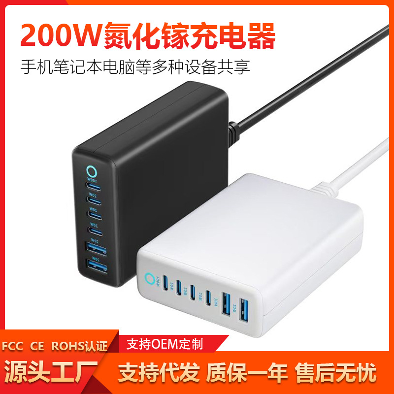 200W gallium nitrida PD pengisian cepat tablet multi-port desktop charger produsen sumber grosir