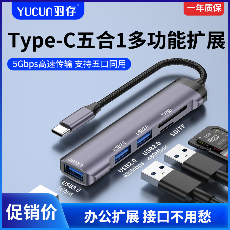 Konverter ponsel USB 3.0HUB, stasiun Dok tipe C, expander splitter, Laptop, Tablet U disk
