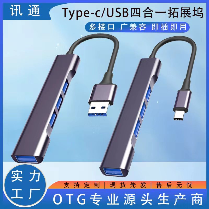 Adaptor usb 3.0 stasiun Dok Typec, stasiun Dok splitter usb 3.0hub satu ke empat paduan aluminium pembaca kartu usb 3.0