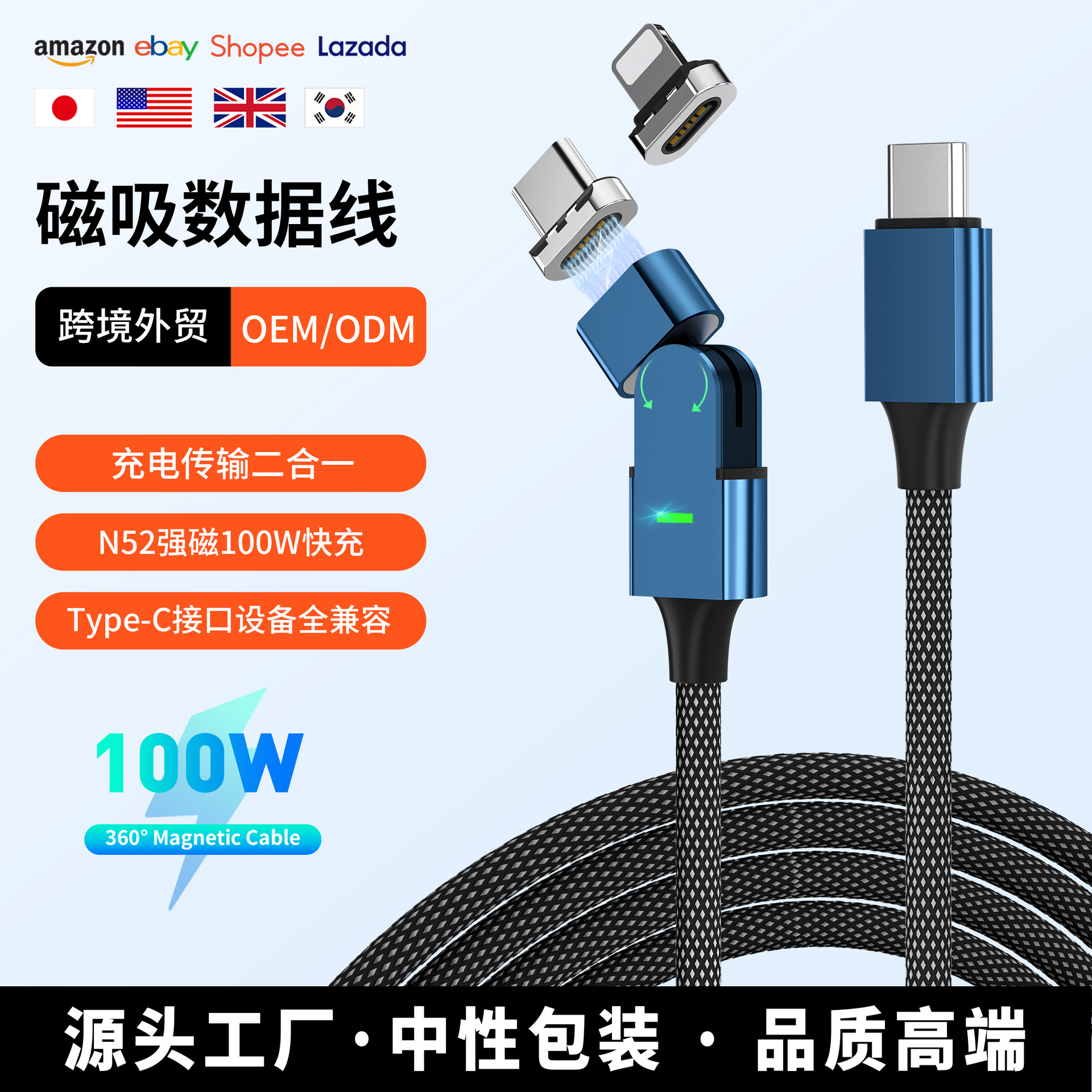 Kabel data magnetik berputar lintas batas, Tipe C ganda berlaku untuk Apple Huawei PD100w kabel pengisian daya ponsel laptop