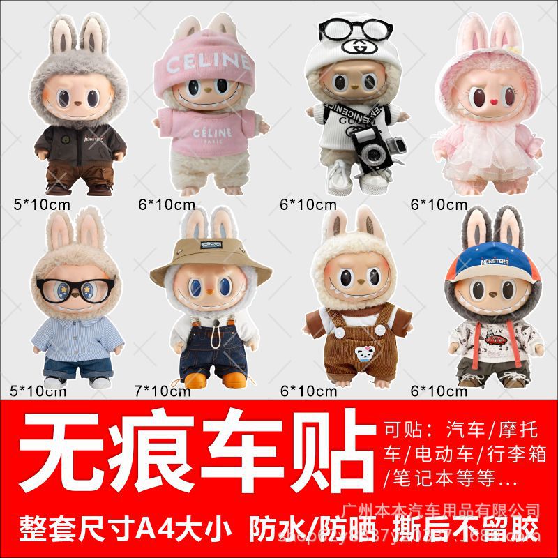 Labu Labubu Stiker Kreatif Mobil Baterai Listrik Mobil Listrik Stiker Hiasan Tahan Air Stiker Goresan Penutup Kepribadian