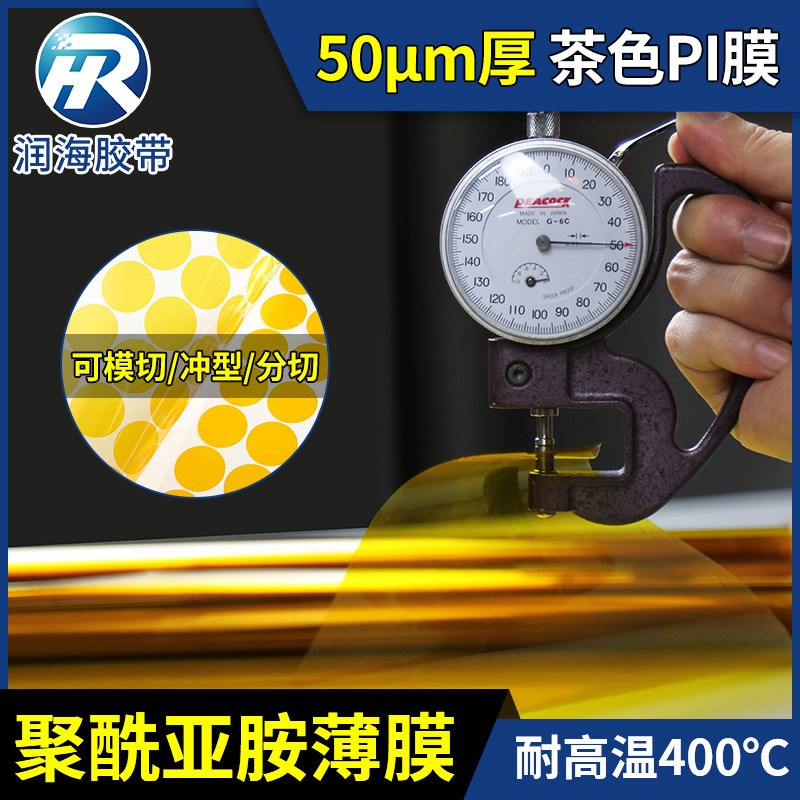 Film Polimida tebal 0.05mm emas PI coklat jari tahan suhu tinggi bahan isolasi pelindung lembar Myra potongan die-cut