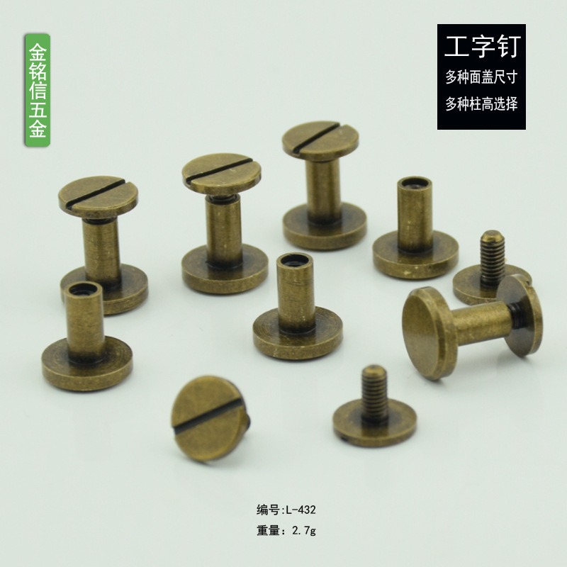 Emas semi-hollow paku keling satu kata sekrup DIY aksesoris kulit dua lapisan kepala datar wanita sekrup pabrik penjualan laris