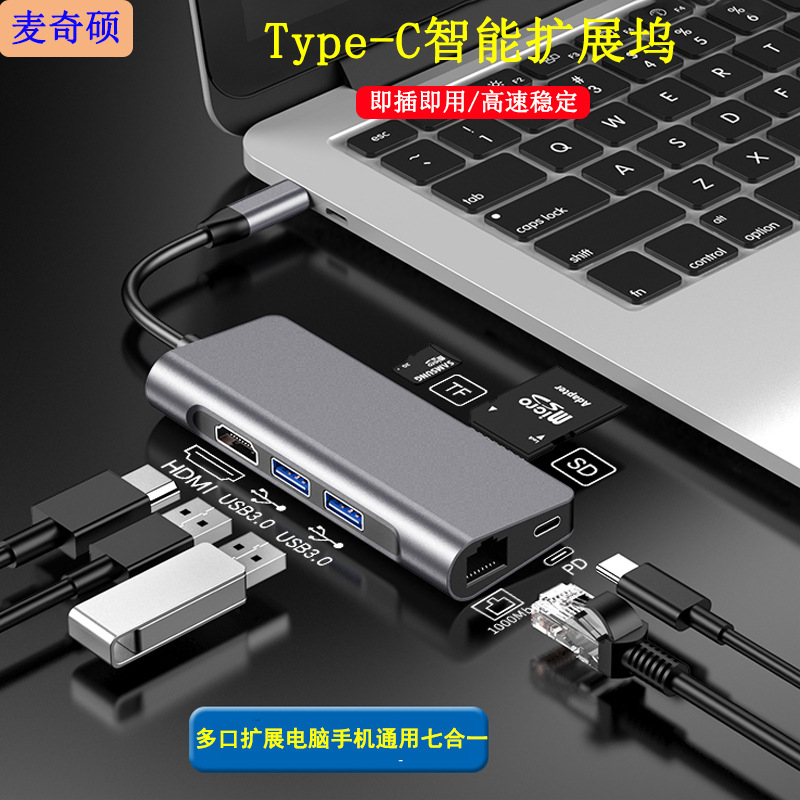 Penjualan langsung dari pabrik stasiun Dok Tipe c Aksesori notebook hub usb ekspansi tujuh dalam satu