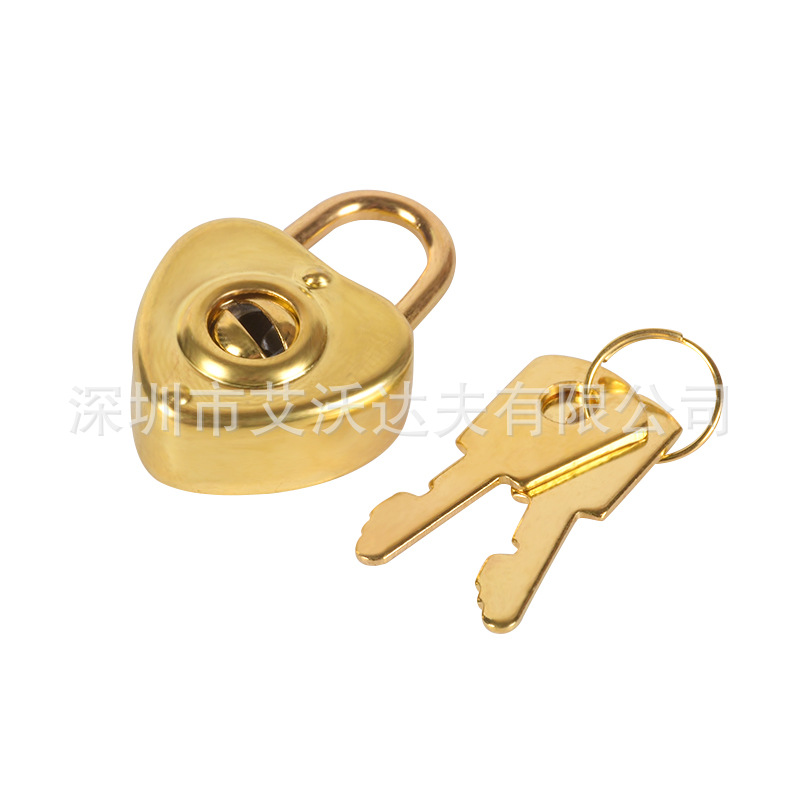 Gembok emas berbentuk hati, dengan klip kunci kotak alat tulis tas notebook aksesori gembok warna dapat diperbaiki