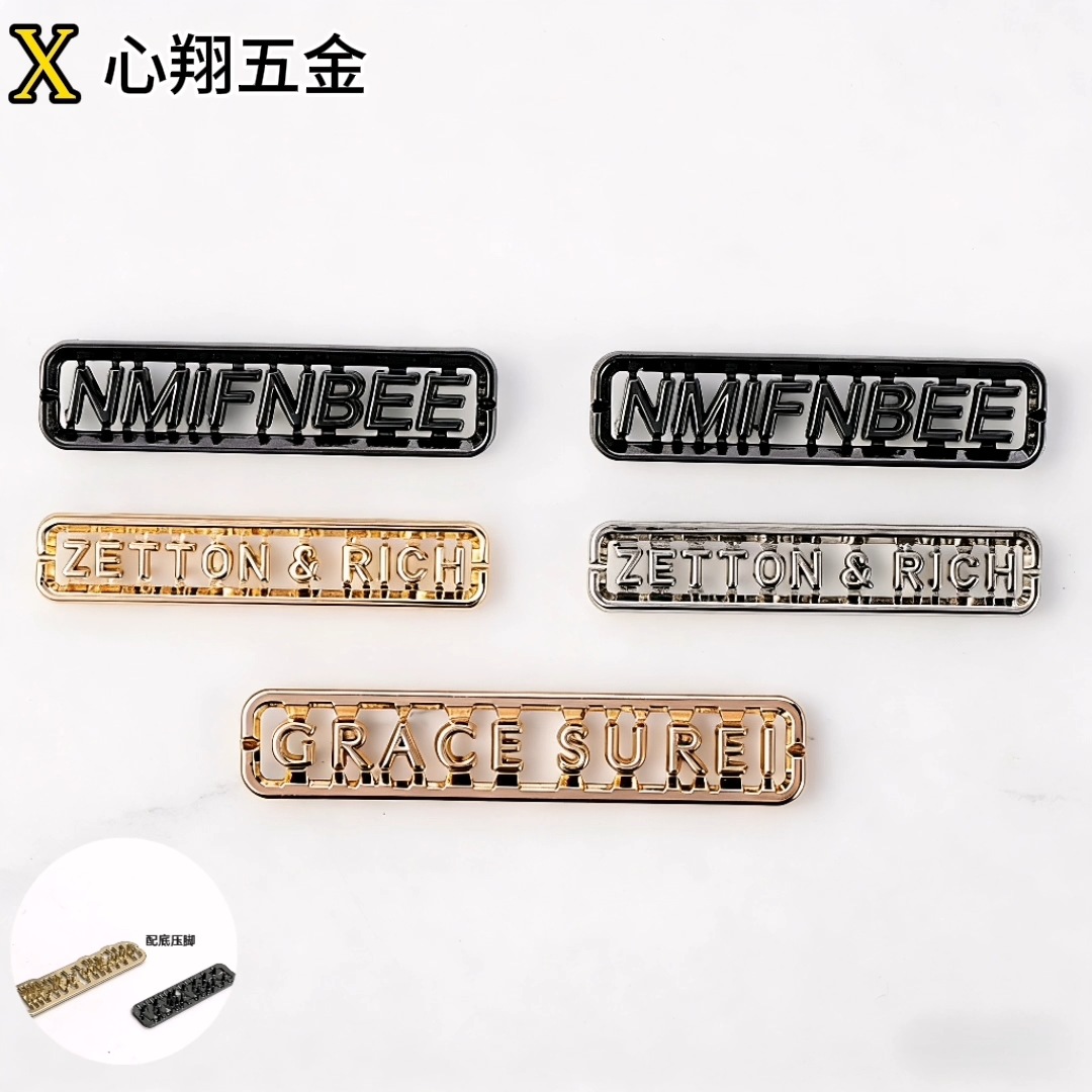 Die-casting satu buah huruf Inggris berongga bagasi perangkat keras logam tanda Aloi aksesori pakaian pelat nama perangkat keras