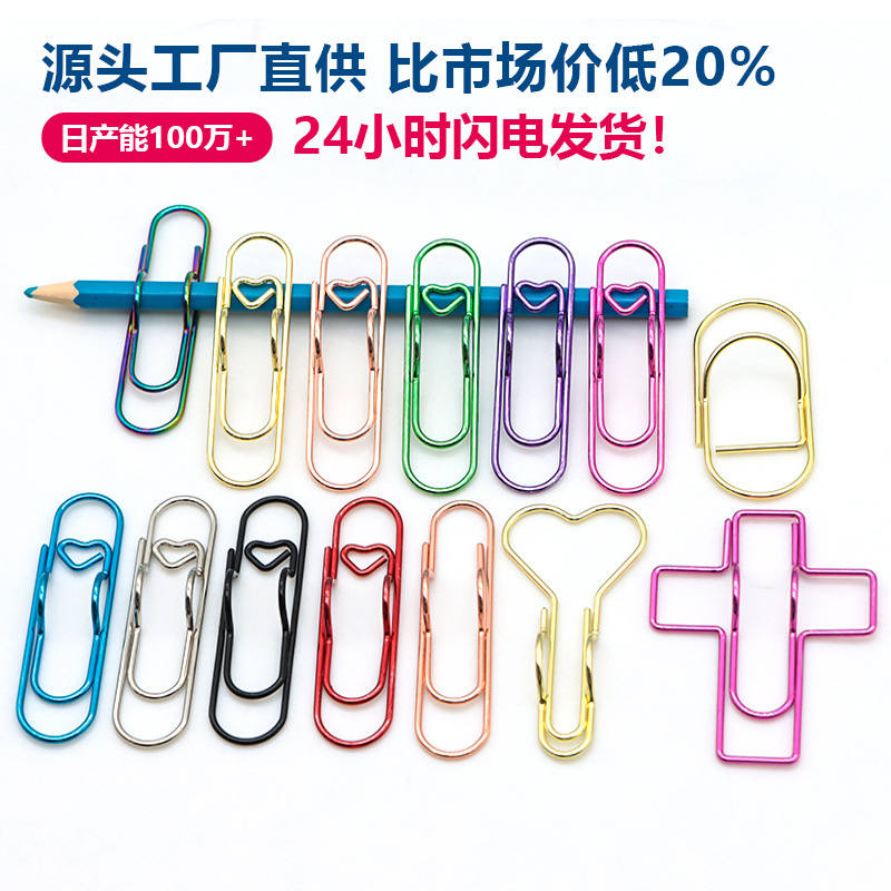 Penjepit kertas berbentuk hati dari logam kreatif, aksesori tempat pena, aksesori buku catatan, produsen aksesori, tersedia dalam stok.