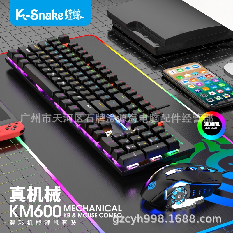 Viper setelan KM600 mouse keyboard mekanis, setelan olahraga kantor, laptop, komputer, game berkilau, sumbu hijau
