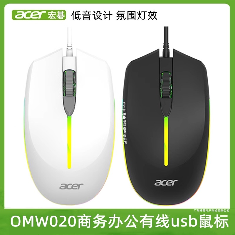0WM020 Mouse Kabel USB Suara Ringan Desktop Komputer Laptop USB Permainan Cahaya