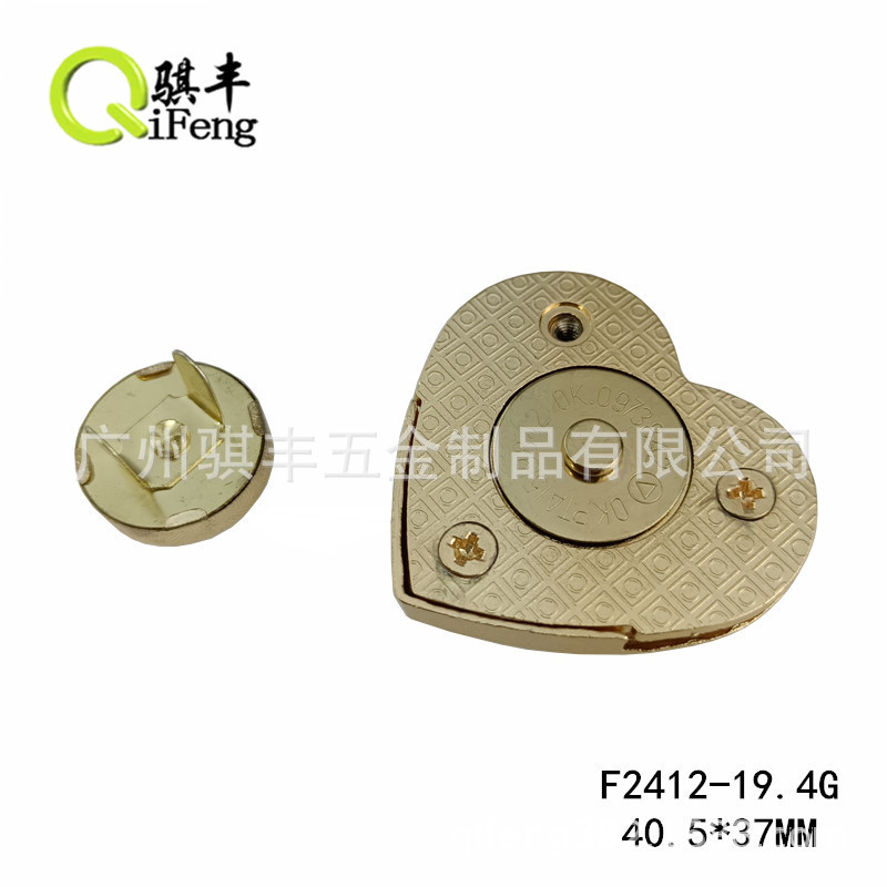 Qifeng tas bagasi perangkat keras wanita, aksesori perangkat keras kunci magnetik bentuk hati gesper magnetik kotak kunci dekoratif