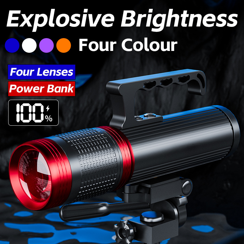 Lampu Pancing Malam Sinar Jauh Lampu Senter Cahaya Kuat Super Terang untuk Pancing Lampu Pancing Lampu Empat Sumber Cahaya Ungu Sinar Biru Panjang