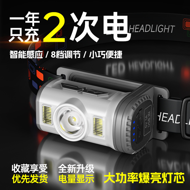 Lampu Induksi LED Lampu Kepala Memancing Memancing Malam Luar Ruangan Super Terang Lampu Lari Malam Berkendara Tahan Air yang Dapat Diisi Ulang