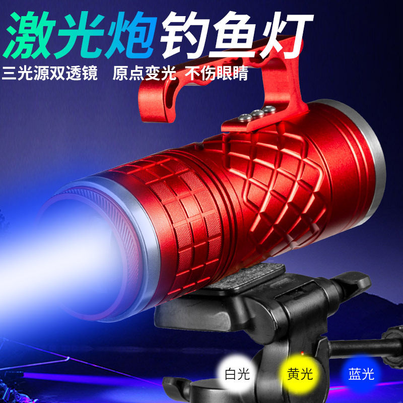 Lampu memancing malam lampu pancingan, cahaya kuat daya tinggi cahaya kuning biru Taiwan memancing liar memancing laut lubang hitam memancing ikan pistol laser