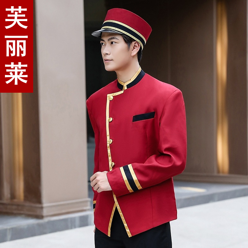 Pakaian kerja Hotel lengan panjang mantel keamanan pria Selamat Datang Penerimaan bagasi pegawai pintu seragam setelan pakaian musim gugur dan musim dingin