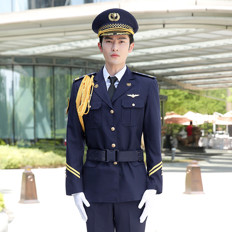 Pakaian kerja baru Pria keamanan hotel lengan panjang penerimaan Selamat Datang setelan seragam anak pintu pengawas musim gugur dan musim dingin