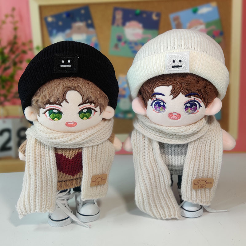 Setelan sweater boneka katun 20cm, setelan sweater pakaian rajut, Aksesori Topi syal, Gaun DIY cocok untuk imut