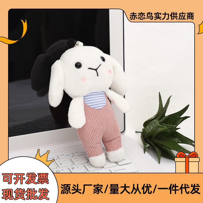 Kelinci jumpsuit kelinci gantungan kunci liontin koper pakaian aksesoris kartun boneka lembut boneka mini