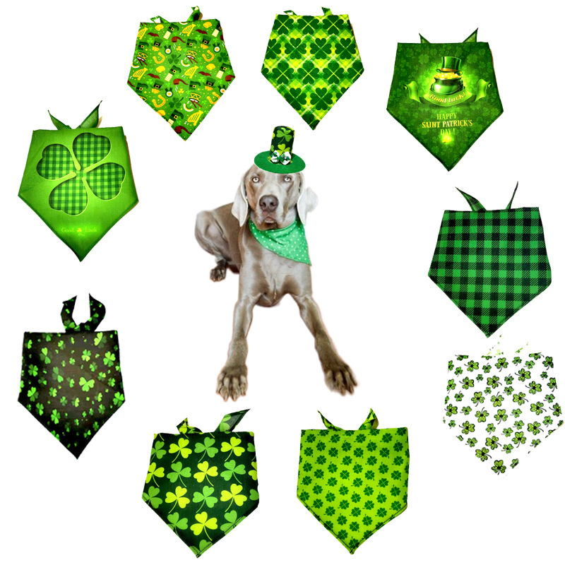Hari St Patrick handuk segitiga semanggi topi hewan peliharaan perlengkapan kucing handuk air liur Irlandia anjing