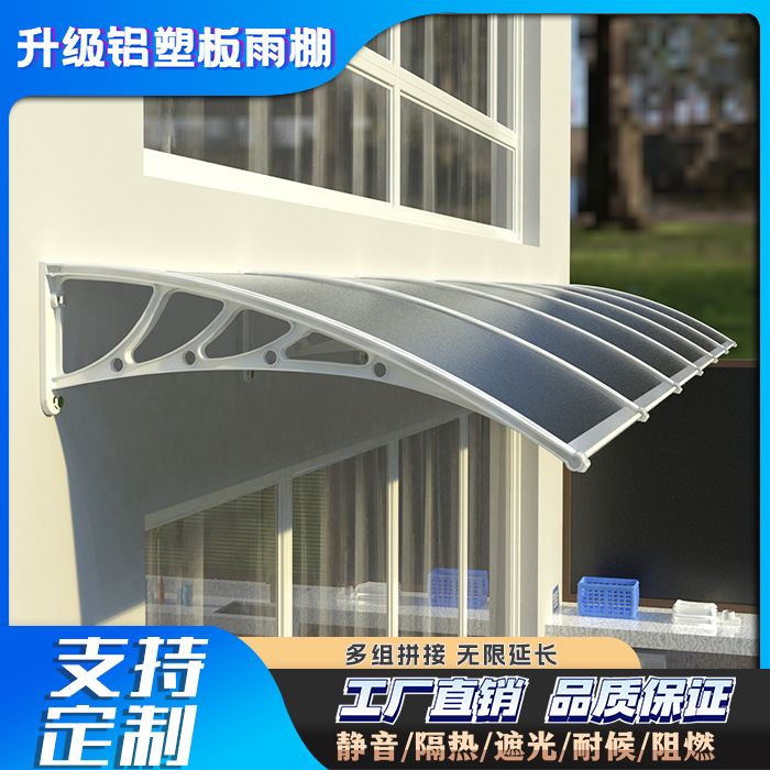 Kanopi papan plastik aluminium sangat senyap, kanopi pintu atap, tenda tahan matahari, luar ruangan tahan hujan