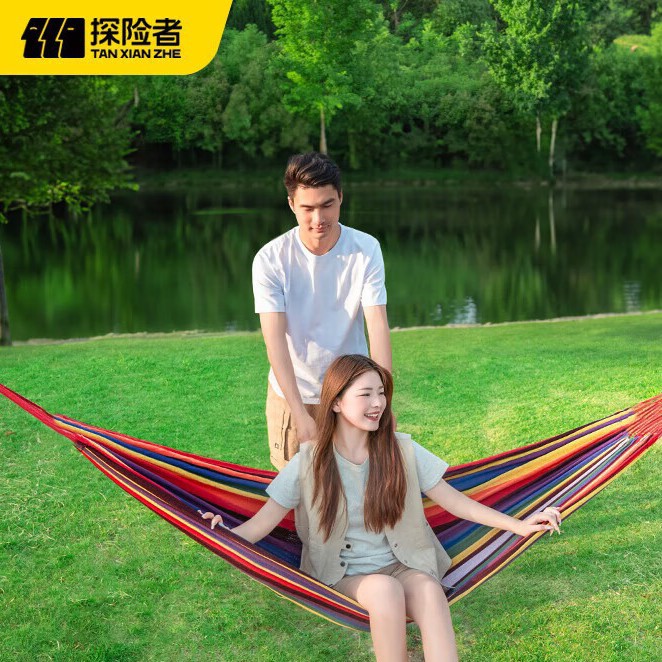 Kanvas Dua Orang Tanpa Tongkat Kayu Tempat Tidur Gantung Tunggal Berkemah Luar Ruangan Anak Dalam Ruangan Ayunan Ekstra Tebal Garis-Garis Anti Balik