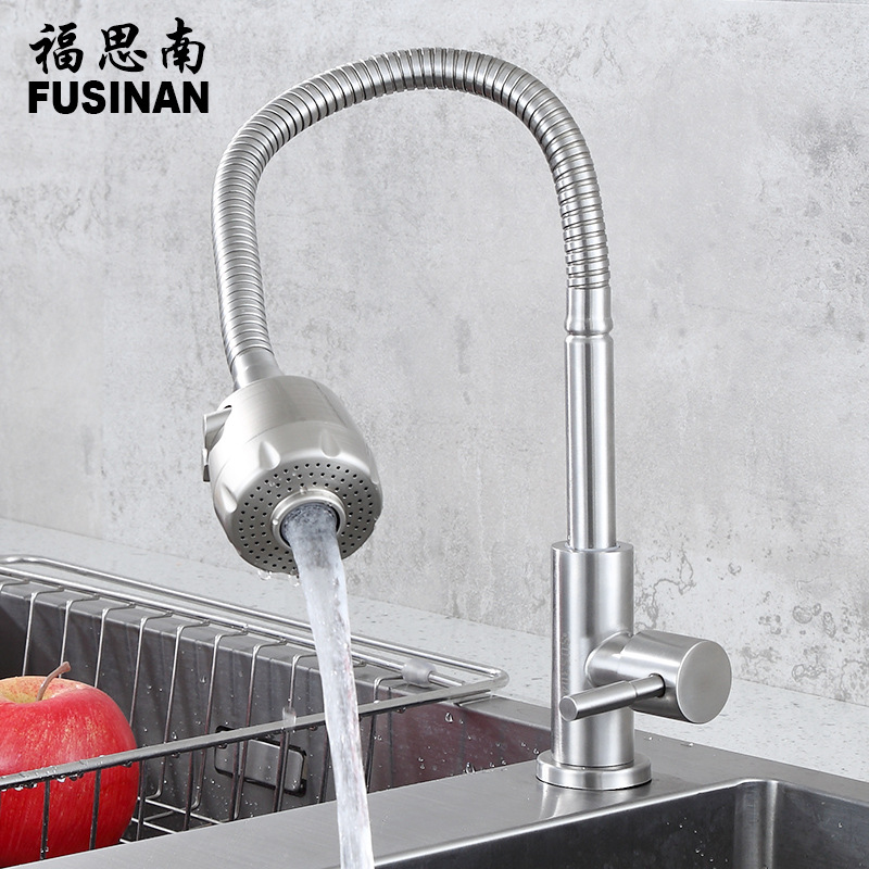 Keran wastafel dapur stainless steel, keran stainless steel Universal keran dapur wastafel sayuran keran dingin dekorasi rumah Hotel teknik 304