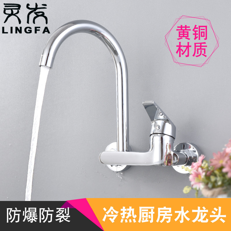 Keran wastafel panas dan dingin dinding tembaga, keran air panas dan dingin pasang di dinding, keran dapur, keran cucian, keran panas dan dingin