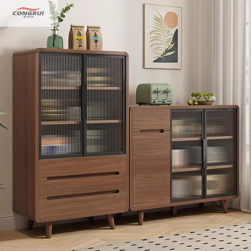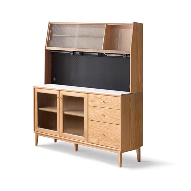 Lemari Mangkuk Eropa Utara Modern Lemari Penyimpanan Peralatan Dapur Multifungsi Lemari Samping Kayu Asli Lemari Samping Dinding Terintegrasi Lemari Teh Ruang Tamu