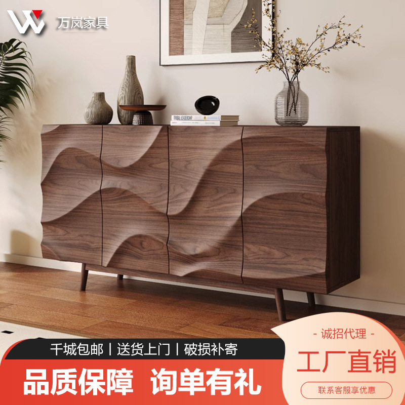 Lemari Samping Kayu Solid Gaya Kuno Lemari Partisi Kayu Walnut Lemari Penyimpanan Ruang Tamu Model Baru Baru Retro
