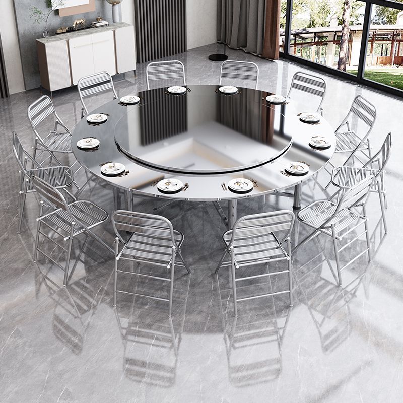 加厚304不锈钢圆桌转盘可折叠圆桌家用吃饭折叠圆桌304特厚圆桌子