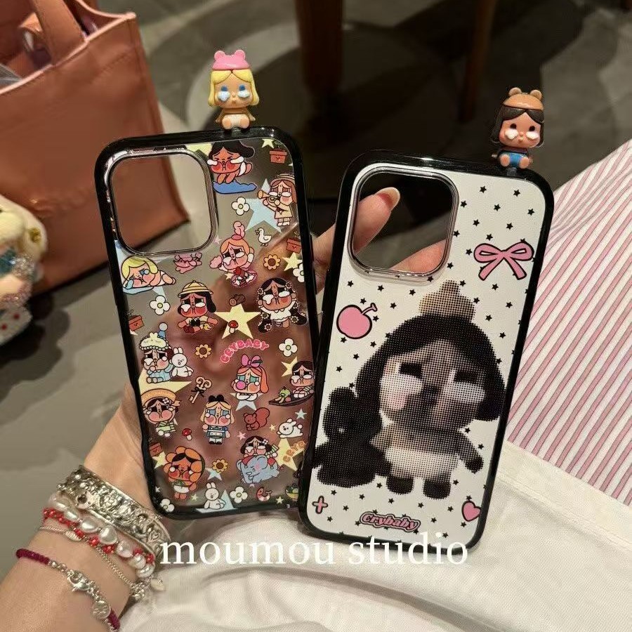 Kartun Lucu Tiga Dimensi Bayi Menangis Cocok untuk Apple 16Promax Casing Ponsel 15pro Baru 14/13/12/11