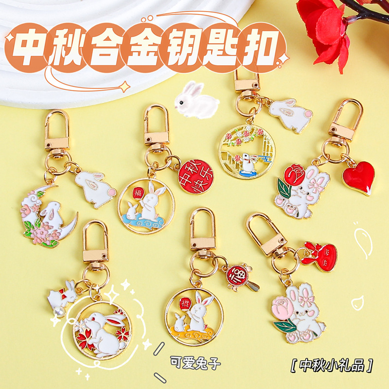 中秋兔子钥匙扣挂件金属卡通可爱包包装饰挂饰礼物节日小礼品批发