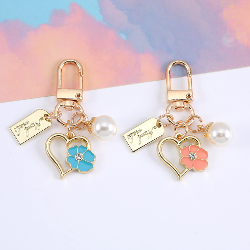新款小清新珍珠花环金属钥匙扣挂件滴油樱花合金diy饰品配件包挂