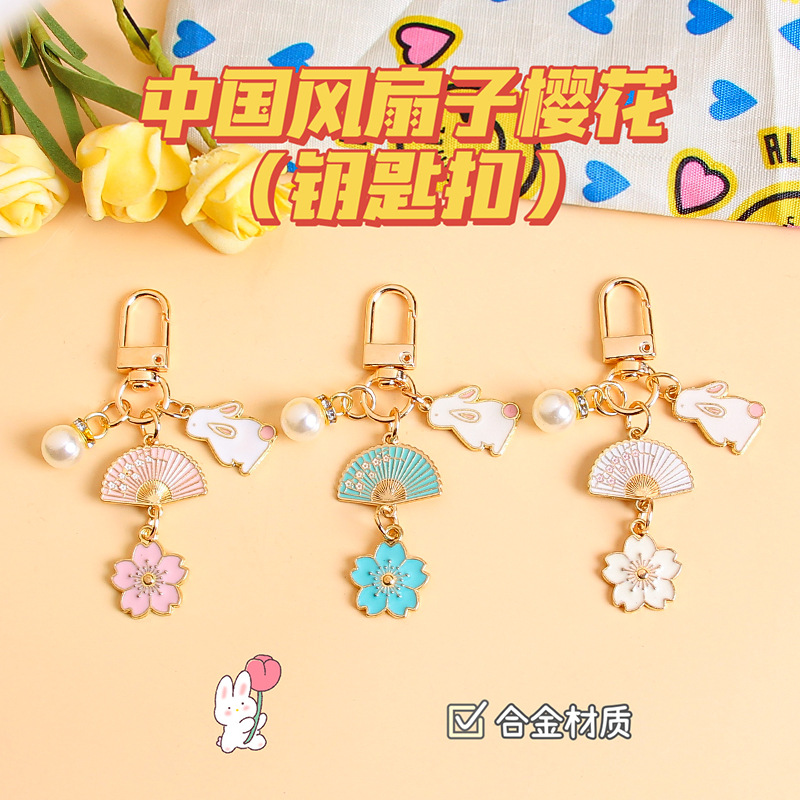 合金樱花兔子钥匙扣挂件国风扇子airpods耳机保护套情侣包包挂饰